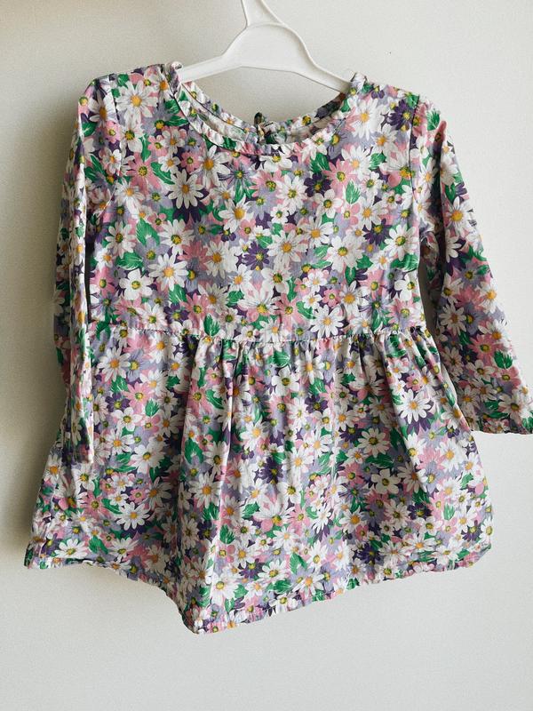 Не Zara 9-12 , 12-18 , 80 , 86 Стан чудовий 100 % бавовна Приємний, квітковий принт Довжина - 40 см Від закінчення рукава до горловини - 32 см Груди - 28 см Є Безпечна покупка