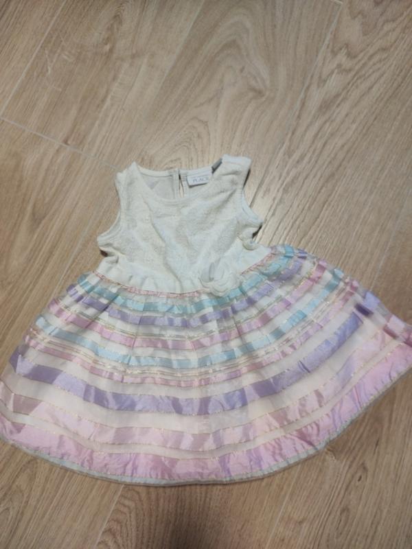 Платье для девочки, очень красивое.С пышной юбкой и на солнце переливается очень красиво.Одежды в день рождения, тем более в идеальном состоянии.По бирцв на 12/18 месяцев.