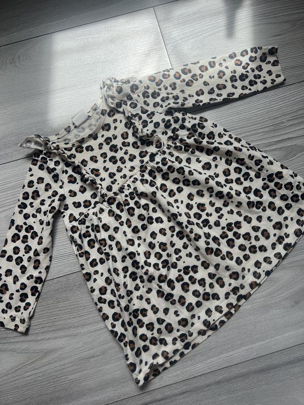 Дитяча сукня легенька з довгим рукавом леопардовий принт. На вік 6-9 місяців (74 см зріст) Дуже гарно виглядає в житті, рюші спереду додають сукні святковості.