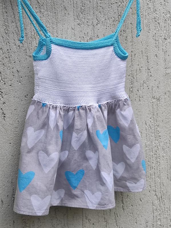 плаття на зав'язках, що дозволяє регулювати довжину під вашу донечку. скоріше це як сарафан Вер зв'язаний з мерсирізованої бавовни спідничка з натуральної якісної бавовни. мірки на фото.