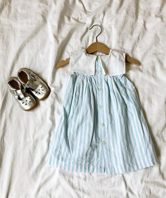 Вінтажна, в смужку, ніжно блакитну і великим коміром 9-12 міс