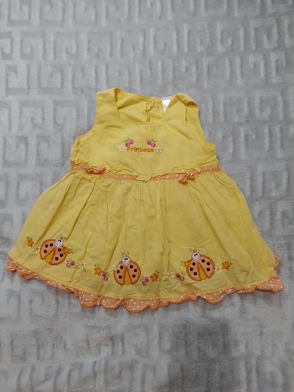 Літня сукня на дівчинку 1-2 років в комплекті з жовтими трусами на резинці на підгузок. Довжина 39см, напівобхват грудей 26см. Матеріал натуральна тканина