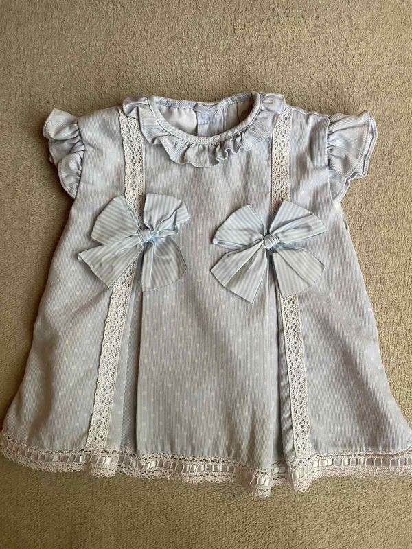 Голуба в білий горох сукня для дівчинки 12 місяців,стан задовільний.