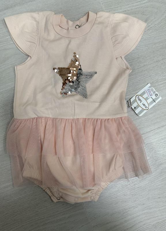 Сукня боді,якість котон. Зірочка з паєток срібне або золоте. Легкий приємний до тіла фатинчик.