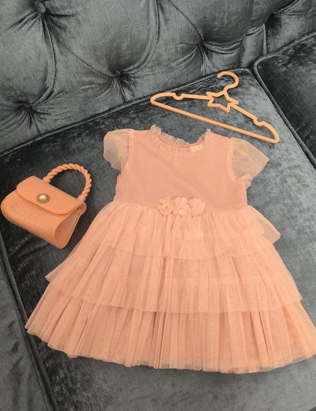 Платтячко next ідеального рожово-персикового кольору 9-12 місяців Довжина 41 см. Напів обхват талії 25 см. На спинці гудзики що зручно при одяганні.