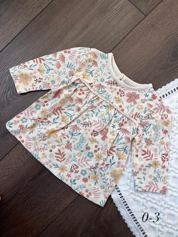 Молочна кремова кофта сукня довгий рукав для дівчинки 0-3 міс 62 см з різнобарвними квітам...