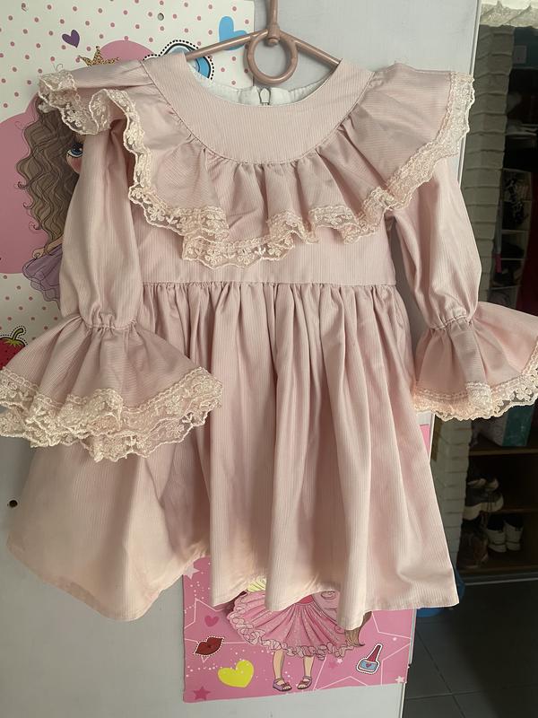 Святкова сукня на принцесу. 100 котон., на підкладці заді бантик прикріпляється на кнопочках Довжина - 44 Талія - 27 Довжина рукавчика 27, від виріза шийки до плеча - 6