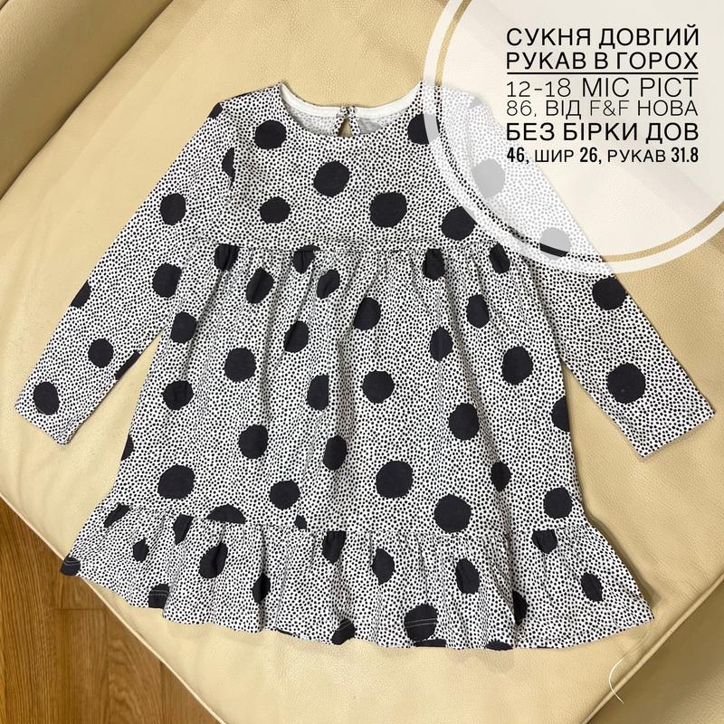 Сукня довгий рукав в горох 12-18 міс ріст 86, від F&F нова без бірки дов 46, шир 26, рукав 31.8