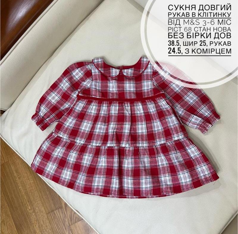 Сукня довгий рукав в клітинку від m&s 3-6 міс ріст 68 стан нова без бірки дов 38.5, шир 25, рукав 24.5, з комірцем