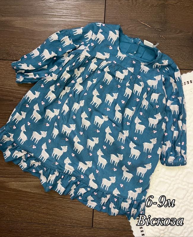 Синя блакитна віскоза сукня довгий рукав для дівчинки 6-9 міс 74 міс з оленями