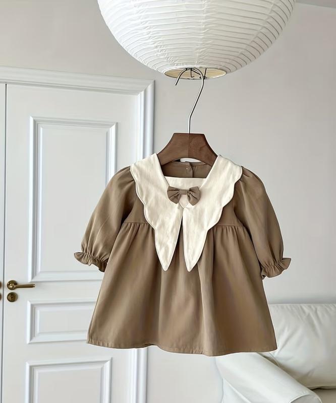 Вік 1-2 роки. Зріст 90 см Платтячко для дівчинки Ніжне бежеве плаття у стильному мінімалістичному дизайні. Має об’ємні рукавчики на резинці, контрастний комір із хвилястим краєм. Легке, комфортне, підійде як на кожен день, так і на свято.