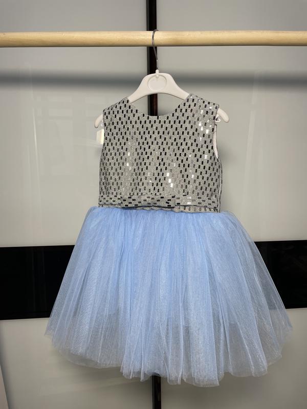 Розкішне ніжне плаття з оздобленням з блискучою переливною кокеткою. Плаття дуже пишне завдяки кільком шарам спідниці. На спинці є потайна блискавка та пояс, з його допомогою можна ідеально відрегулювати об'єм і довжину. Ширина корсета: 28 см Довжина сукні: 52 см