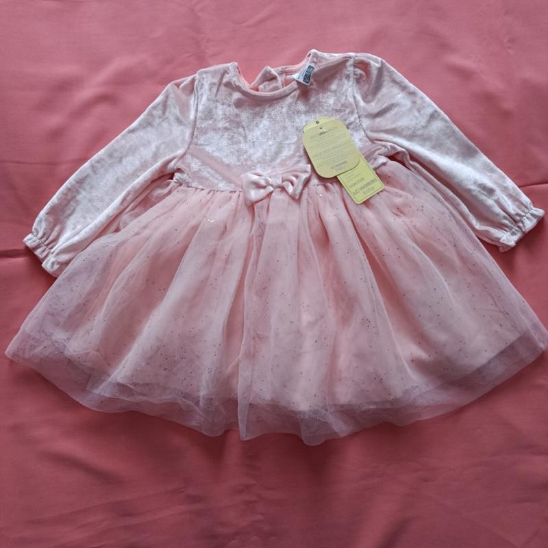 Плаття дитяче. Вік 6-9 міс (68-74 см) , 8-9 кг. Склад : основна тканина 93% поліестер, 7% еластан, друга тканина 100% поліестер, третя тканина підкладка 100% бавовна. Виробник: Туреччина