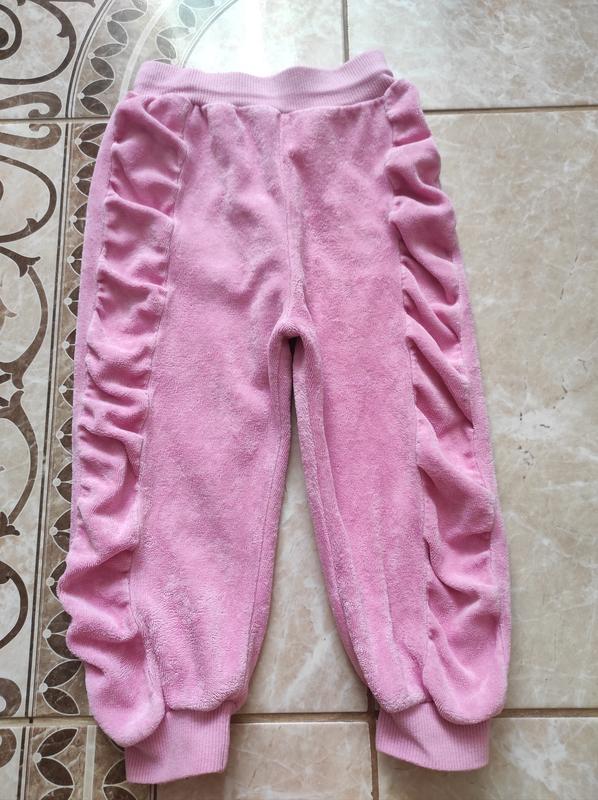 Велюрові рожеві штанці. Розмір 80-86 см, дивіться виміри. На останньому фото маленьке плямочка, ледве помітне.