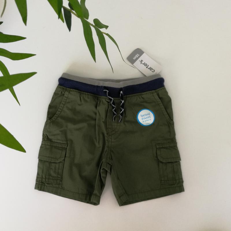 Стильні шорти з кишенями темно-зеленого кольору (хакі). Не тягнуться. Розмір 18 міс, зріст вказано на бирці. Покупцеві декількох товарів - зроблю знижку. Код товару 2-39