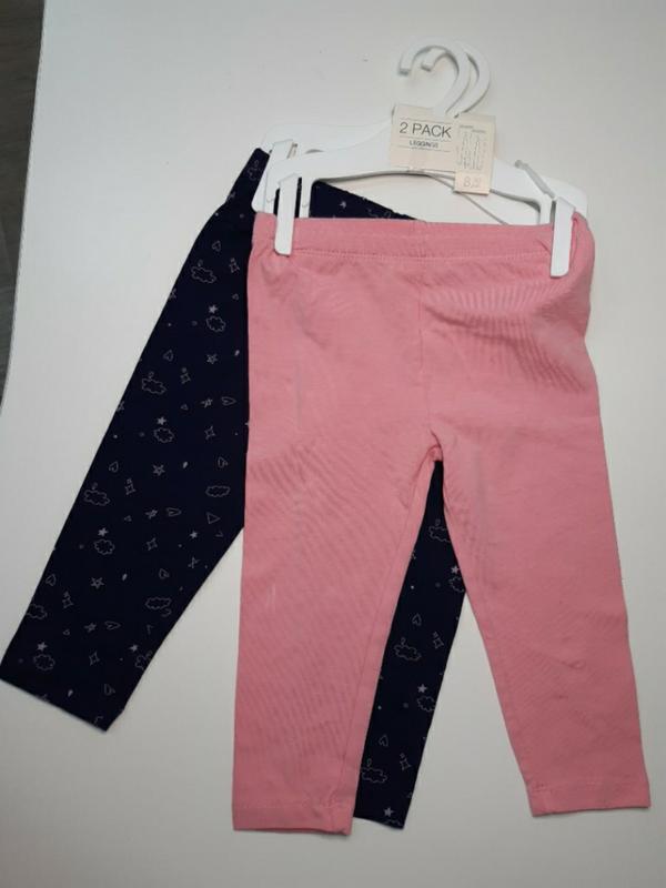🧸Набір з 2-х штанів-лосин для малят, OVS🧸 ⭐ Розмір 80 - 1 набір з 2-х од. ⭐Виміри: ПОТ - 22см Довжина - 43 см крок - 27см ⭐ Колір - рожевий і синій рожевий принт ⭐ склад : 96% бавовна ⭐Нові, в наявності оригінальні плічка, скріплені паперовим лейблом ціна вказана за 1 од.