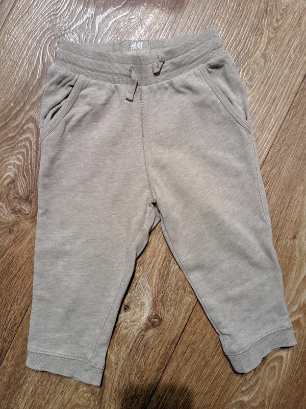 Приятный к телу хлопковый трикотаж. Мягкие. В поясе широкая резинка и шнурок. Недостаток: немного растянуты манжеты. Указан рост 80, большемерят. Замеры на фото.