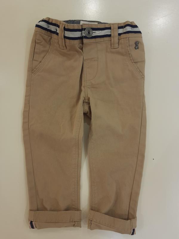 Новенькі стокові штанці на хлопчика 12-18міс.Довжина від пояса до низу штанини 45см, довжина від пояса до памперса 20см, довжина кроку 31.5 см, талія 26см. Легкий стрейч.