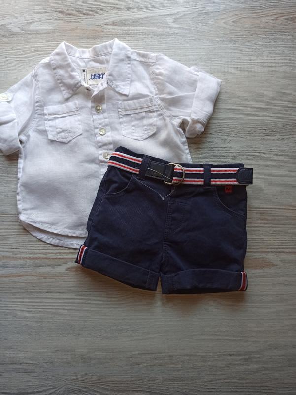 Котонові шортики 3-6 місяців. Дуже зручні є еластен,завдяки ньому трішки тягнуться. Оригінал. Якісні та стильні. В наявності є сорочка 100 % льон, супер на спекотне літо. Франція.
