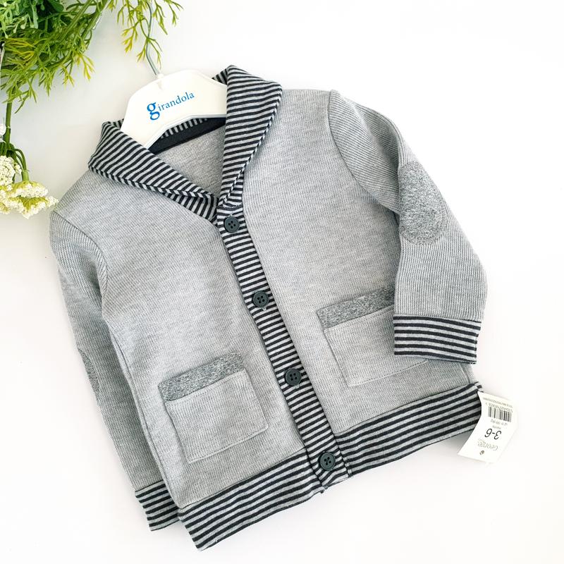 Стильний кардиган з карманами і латочками на ліктях, 100% бавовна, розмір по бірці 3-6 міс. Довжина 30,5, ПОГ 24,5, рукав від плеча 24