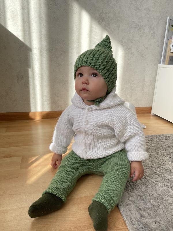 Ручна робота. Склад нитки: 40% шерсть / 20% бамбук / 40% акрил Розмір буде на 6-8 міс