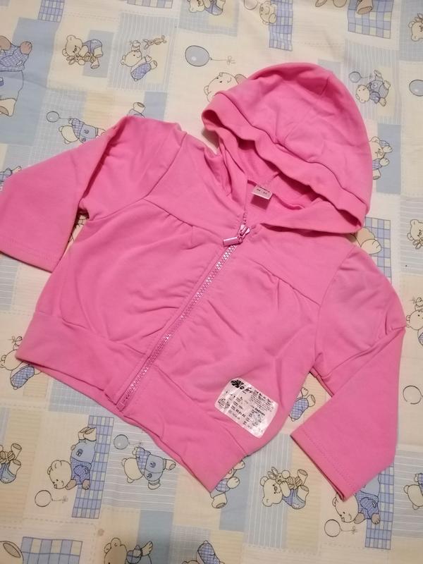 Яскрава кофтинка з капюшоном. Ніжна м'яка та приємна до тіла. Плечі 24 см, довжина 30 см, довжина рукава 26 см. Ширина під рукавами 31 див.