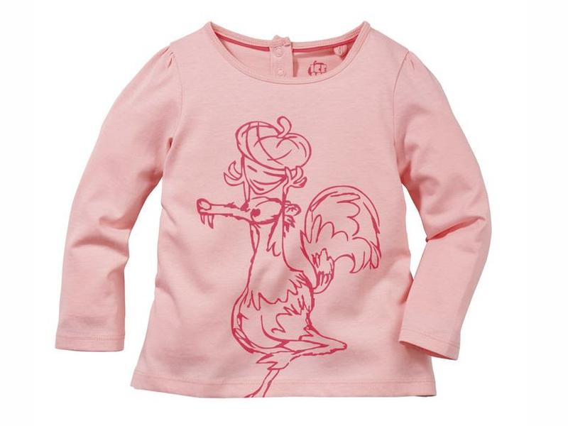 Стильный лонгслив на девочек от Ice Age, Baby collection из торгового дома Lidl. Детский лонгслив светло-розового цвета с принтом белки с жёлудем — персонажа из мультфильма "Ледниковый период". Мягкий, приятный на ощупь качественный трикотаж из 100% хлопка. Сзади удобная застежка на кнопочки. Изделие сертифицировано международной системой тестирования текстильной одежды - Oeko-Tex Standard 100. Размеры в наличии: 74-80 на 6-12 мес. Длина 31, ширина под ручками 28 , плечи 21, рукав 28 86-92 на 12-24 мес. Длина 36, ширина под ручками 28 , плечи 23, рукав 32. Цена 150 грн.