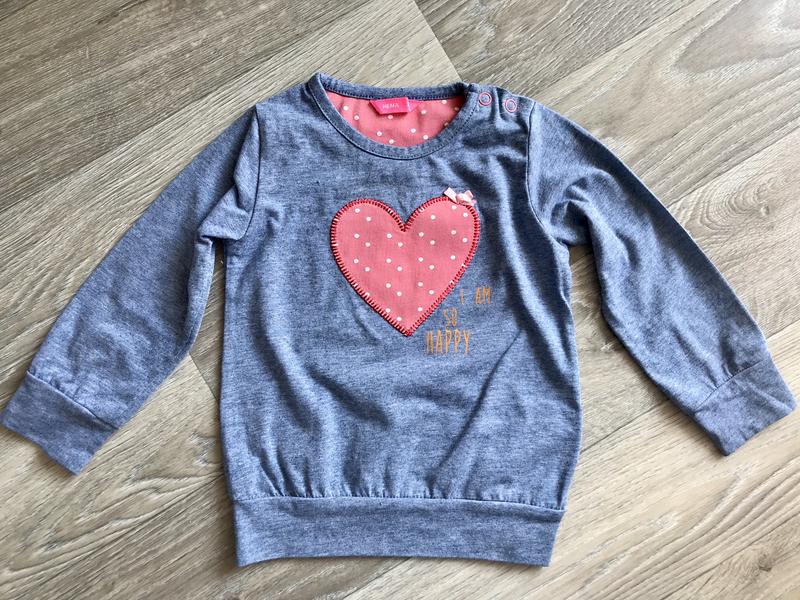 Кофта з аплікацією «серце», розмір на зріст 74 см по бирці. Заміри: довжина кофти 35 см, довжина рукава 30 см, Пог 27 див.