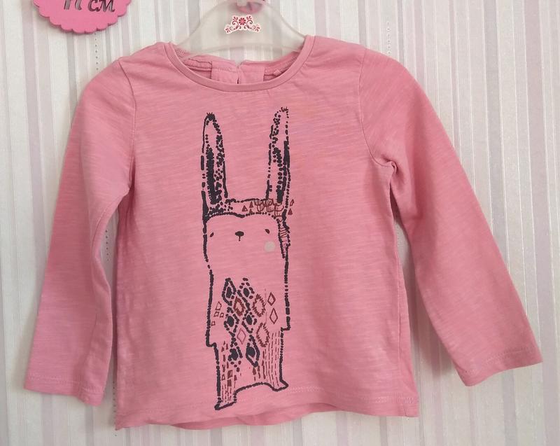 Персиковый реглан от Next с принтом кролика в размере 12-18 мес. Состояние идеальное. Сзади застегивается на пуговицы. Цвет скорее запыленной розы. 100% хлопок. Замеры: длина 35, ширина 27, рукав 31,5. При покупке трех товаров – укрпочта в подарок!