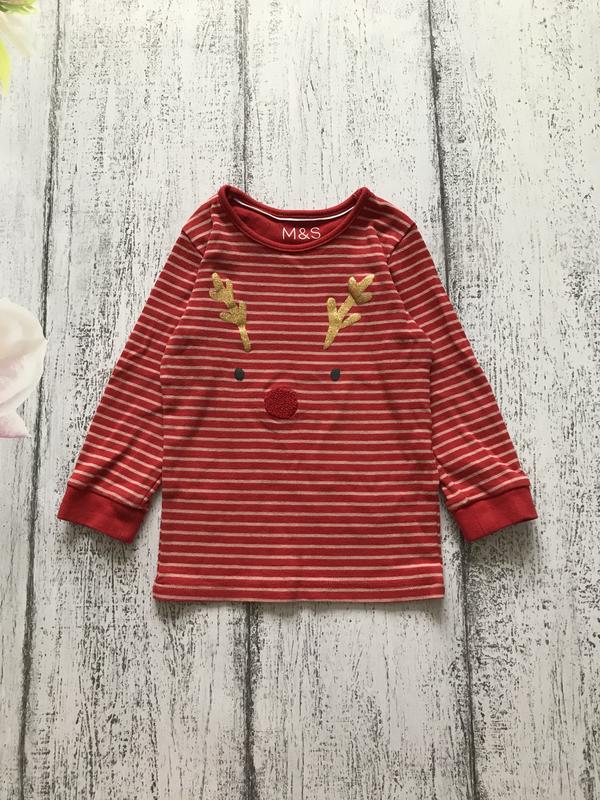 Крута кофта реглан в смужку олень M&S 1,5-2 роки, заміри на фото