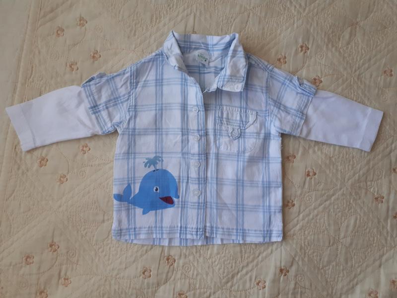 Модная рубашка с рукавами, как у реглана. На 3-6 мес. В отличном состоянии. Пересылка возможна при заказе от 50 грн.