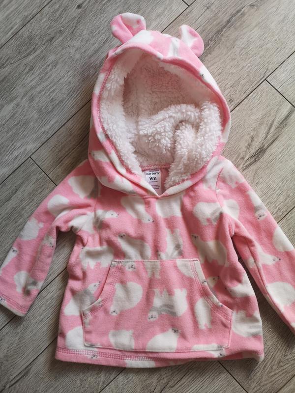 Красива флісова кофтинка, стан ідеальний (плям немає, катишек немає), на жаль, була одягнена один раз. Розмір вказаний 9 міс.