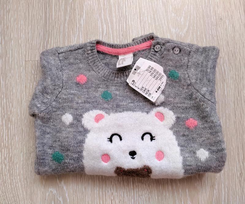 Новенький брендовий светр з милою принтом. Дуже м'який і затишний - Вашому малюку сподобається ❤️ Підійде і хлопчику, і дівчинці, забарвлення універсальна. Розмір вказано до півроку, більшомірить, добре буде до 10кг приблизно, але підвернувши рукавчики можна носити вже з 4х місяців )