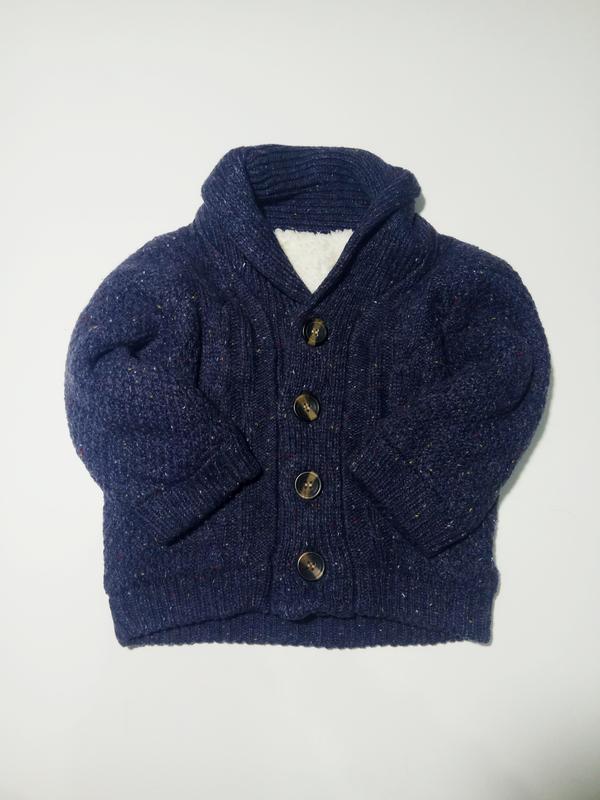 Дуже теплий і гарний кардиган. Якість супер. НОВИЙ, привезли із закордону не разу не одягали ( швидко виросли). Усередині м'яка травичка. 68 % акрил 32 котон. Заміри: Довжина виробу 34 Довжина рукава 29 Ширина 33 Відправка Новою поштою і Укр поштою