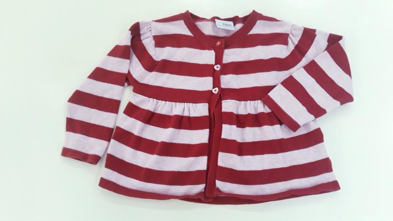 В ідеальному стані коттоновая кофточка на дівчинку 12-18міс.Довжина по спинці 34см,довжина рукава від плеча 29.5 см,ширина під пахвами 29см.