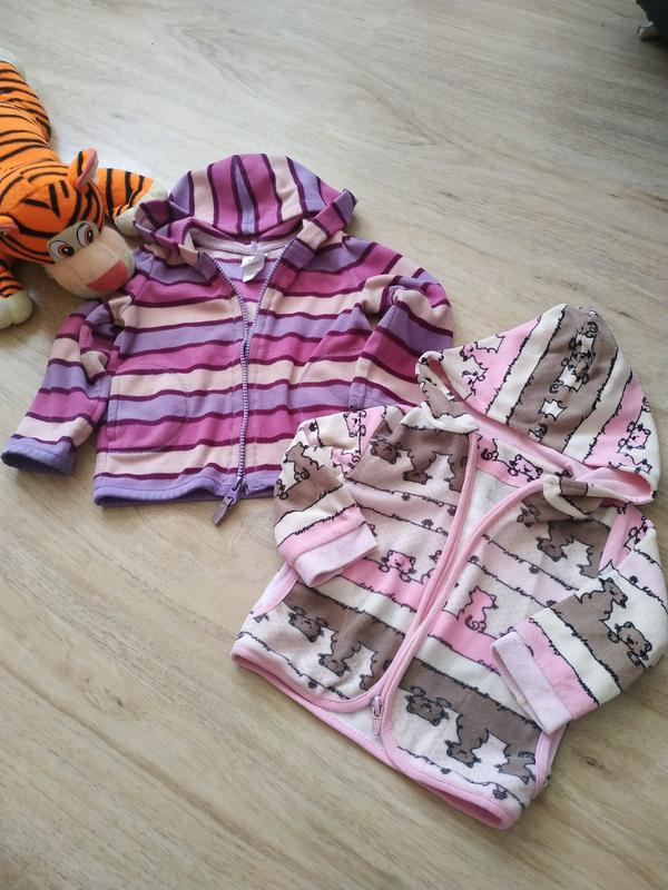 Кофта в смужку флісова,з котиками -велюрова ,обидві в хорошому стані . Ціна за дві ,можна окремо