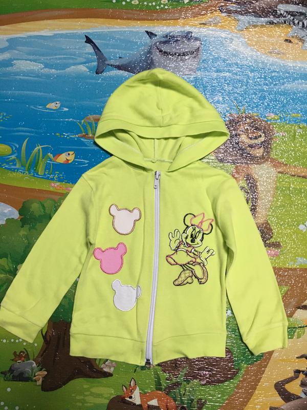 Тонка кофточка на блискавці з Мінні Маус, дуже зручно влітку коли подує вітерець або на вечір. Заміри на фото. Колір яскравий салатовий