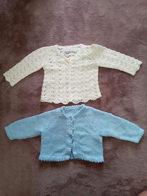В'язані кофтинки на малюка у відмінному стані. Розмір 0-3 міс. Стильно виглядають і доповнюють образ маленьких модників.