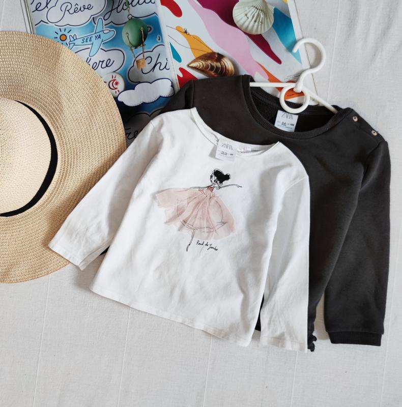 білий лонгслів з красивою аплікацією від Zara для дівчинки 12/18 місяців на зріст 86 см, тканина котон, ПО грудей 27 см, довжина 32 см, рукав 25 см