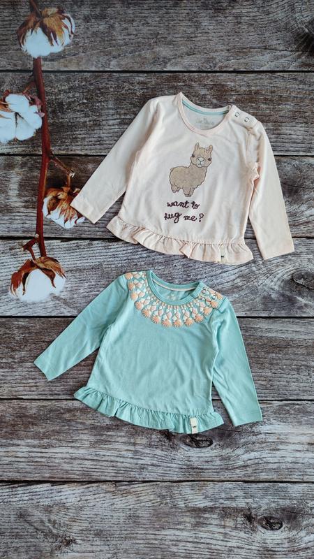 Дуже ніжного кольору кофтинки на дівчинку у розмірі 62-68 (2-6 місяців). Бренд Kuniboo. Регланчики на кожен день з милим принтом та гарними рюшами. На плечі додатково 2 кнопочки для зручності одягання. Легенькі та зручні кофтинки стануть улюбленими речами гардеробу маленьких красунь. На замітку матусям, вони дуже круто комбінуються з лосінками (див. останні фото) 😉 Ціна набору з 2 шт. 175 грн, але можна придбати поштучно.