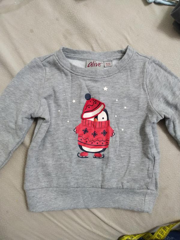 батник, светр фірми alive на зростання 86/92, підійде і дівчинки і хлопчика, з невеликим начесиком. ідеальний стан, 1 раз одягнений. довжина 33, у грудях 29, рукав 30.5 см