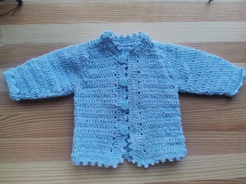 Кофта пов'язана гачком, підійде для самих маленьких або для гри в ляльки Довжина від плеча до низу виробу 21 см Довжина рукава від лінії плеча 15 см Ширина від кофти 18 см