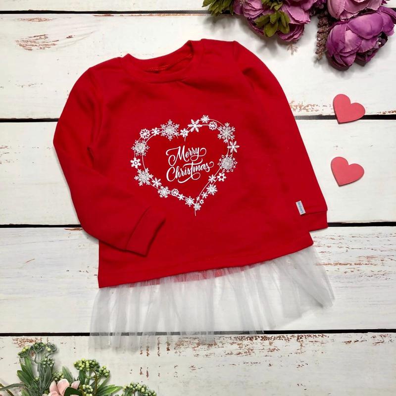 Красива новорічна кофточка Футер з начосом Червоний. Ширина/довжина без фатину/довжина з фітином/довжина рукава 86см 25,5/29/36/26.
