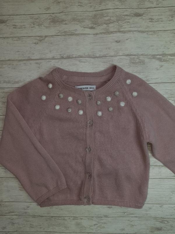 В ідеальному стані. вказано 68р але можна і довше. Довжина 28, ширина 26, рукав від шиї 32. Дуже ніжна приємна кофтинка.