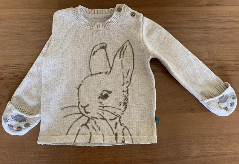 Кофтинка, светрик для малечі з мілим зайченям. Маломірить, тому найкраще підійде на вік 9 міс - 1 рік, можливо і старше якщо дитинка невеличка. На рукавчиках має застібки - рученята можна ховати в рукавички.
