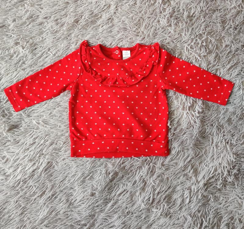 Світшот в ідеальному стані , вік 3-6 місяців ( 62/68см) . Напів обхват грудей 26 см, довжина 28см, довжина рукава 22.5 див. В реальності червоній не такий яскравий, дещо приглушений і темніший, як на останньому фото.