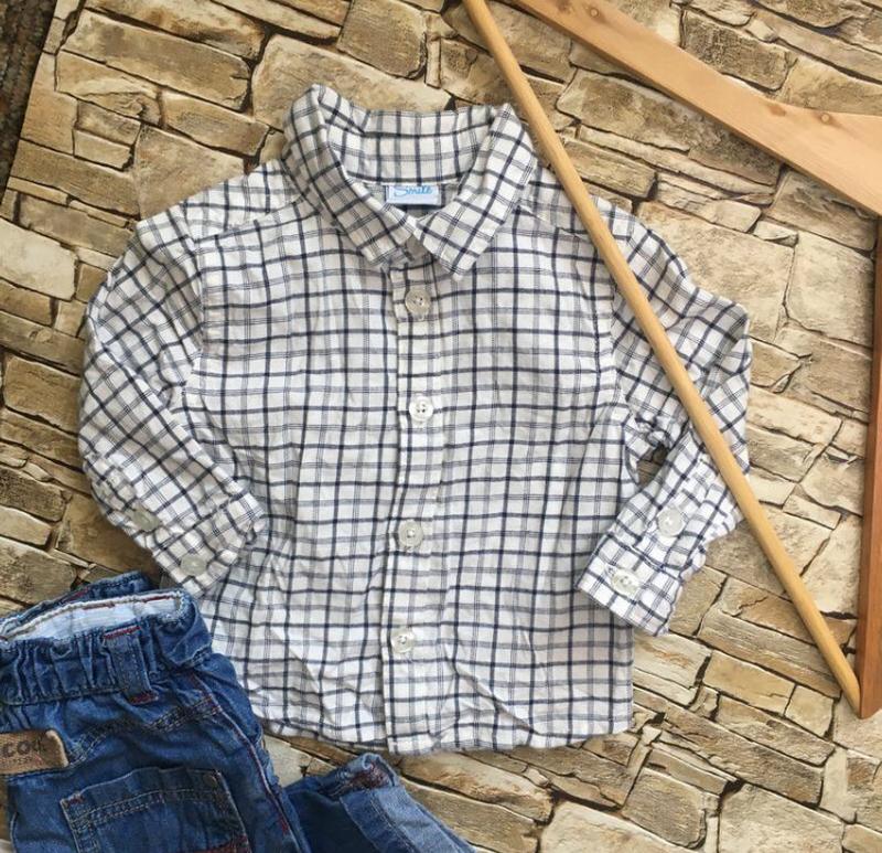 Сорочечка для хлопчика на зріст 68 см Тканина м'яка, дуже приємна до тіла, 100% котон. Стан нової, без бірки. Плечі 21 см ПОГ 25 см Рукав 23см Довжина 30 см