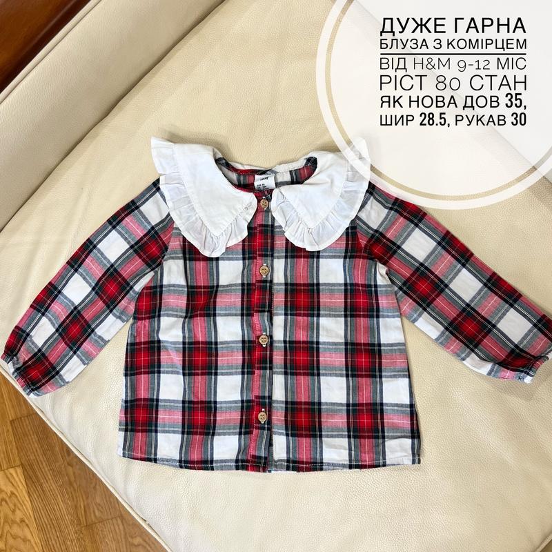 Очень красивая блуза с воротничком от h&m 9-12 мес рост 80 станов как новая дол 35, ши...