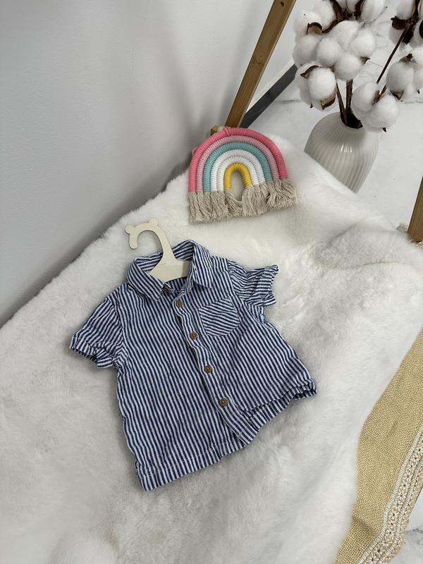 Стильная рубашечка с коротким рукавом в полоску primark, на 3-6 мес, состояние идеальное