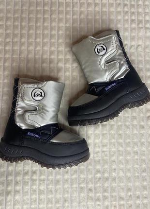 Водонепроникні теплі зимові сапожки. Розмір -24,устілка~15 см Підійдуть, як на дівчинку, так і на хлопчика. Нюанс на 1 фото, трішки жовте,в на останньому на підошві,але на носіння не впливає.